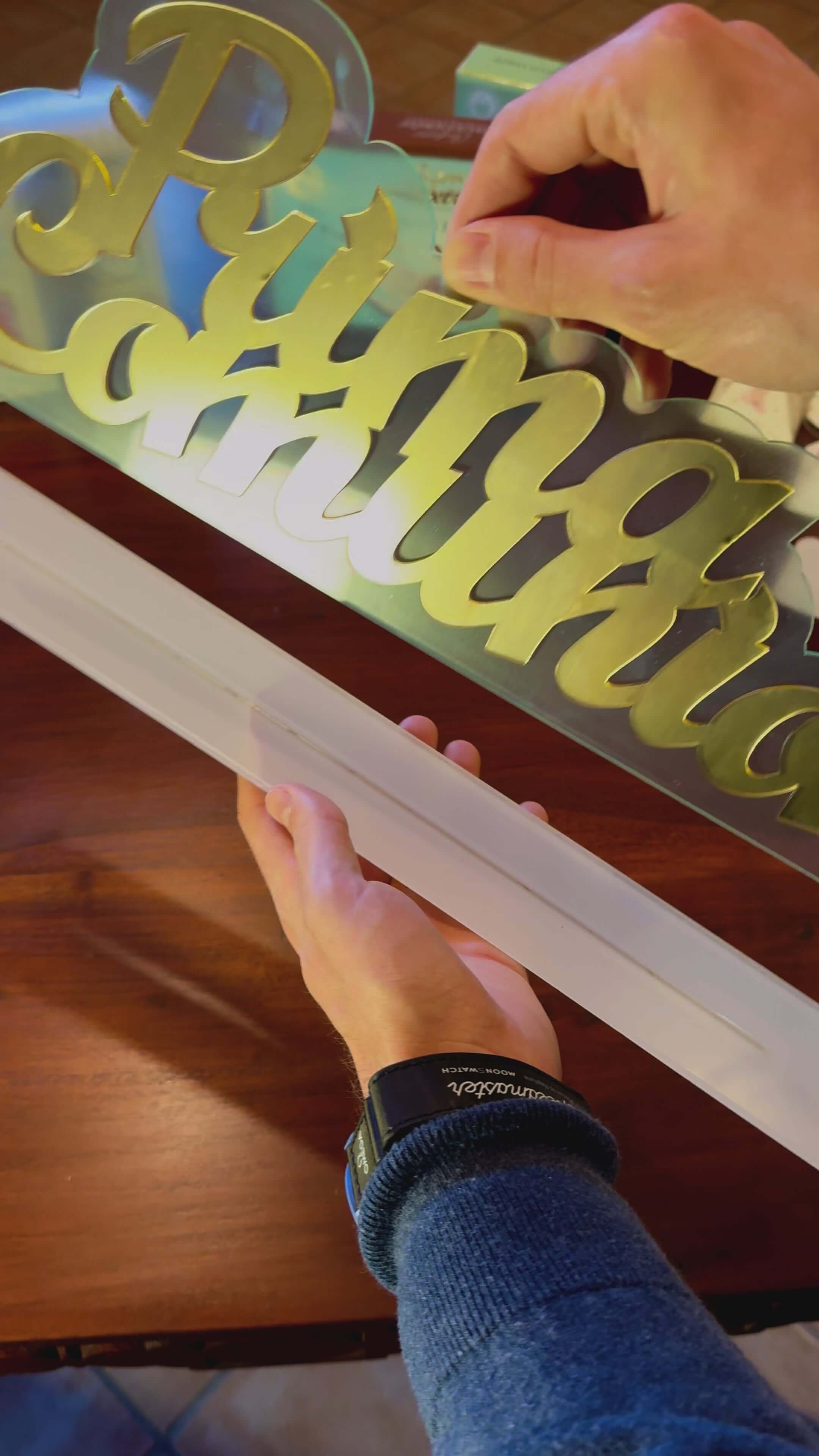 Scritta oro per comunione con contorno in plexiglass, perfetta per il vostro evento.
